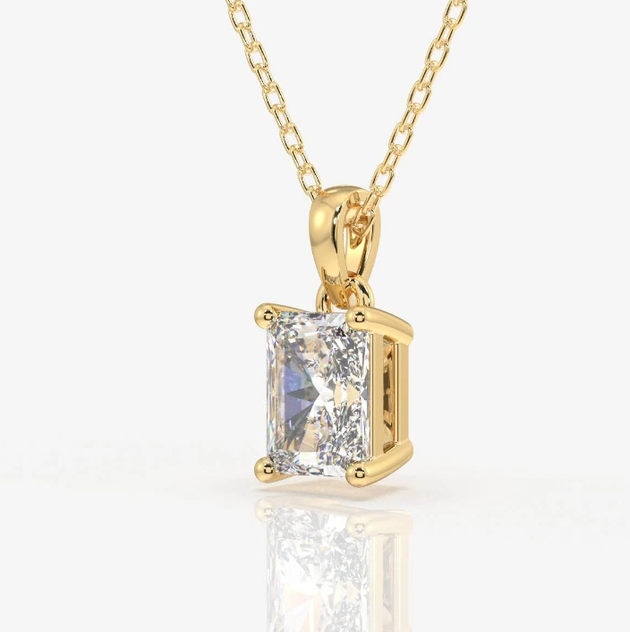 1 Carat radiant cut moissanite pendant | Moissanite pendant in gold and 925 sterling silver| GRA certified moissanites