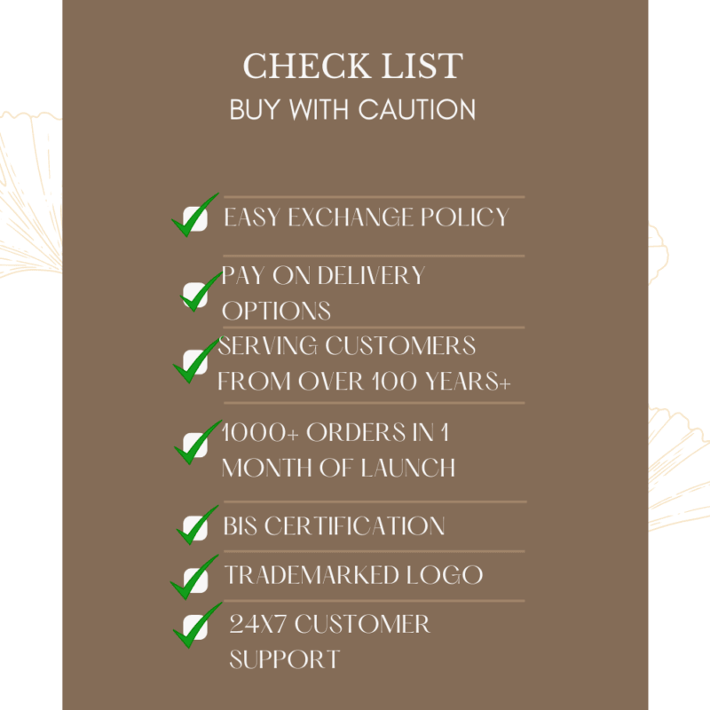 We have an easy 7 days exchange and return policy intact in case of manufacturing, sizing or any issues concerning the quality and purity of the product.